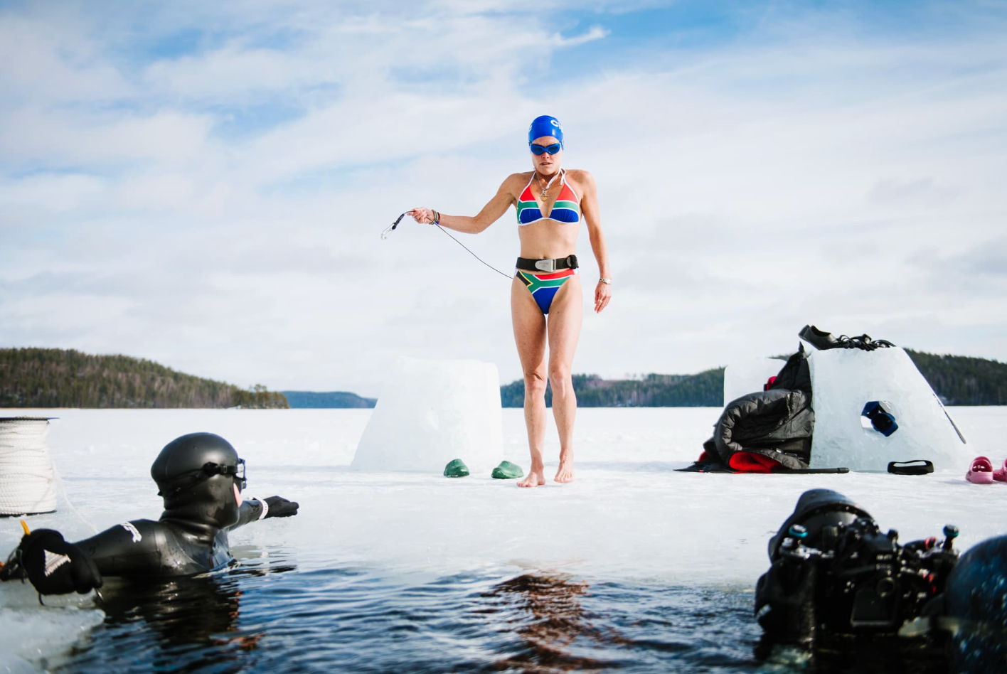 Eine Südafrikanerin will den Rekord im Eistauchen brechen. Ohne Flossen, nur im Bikini. Der gefrorene See in Finnland ist dabei ihr kleinstes Problem